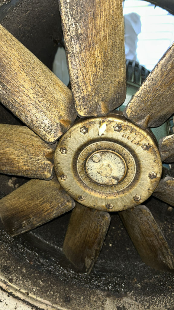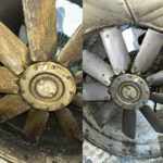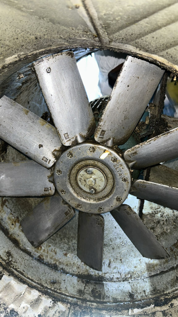 Before and After photos of an commercial extraction fan clean carried out by the TCMS Team.