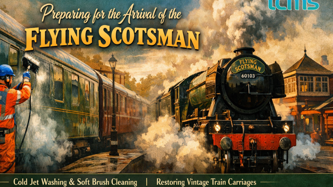 At TCMS Cleaning Services, we recently completed a specialist exterior cleaning project at Vintage Trains, ensuring their historic carriages were looking their best ahead of the arrival of the legendary Flying Scotsman.